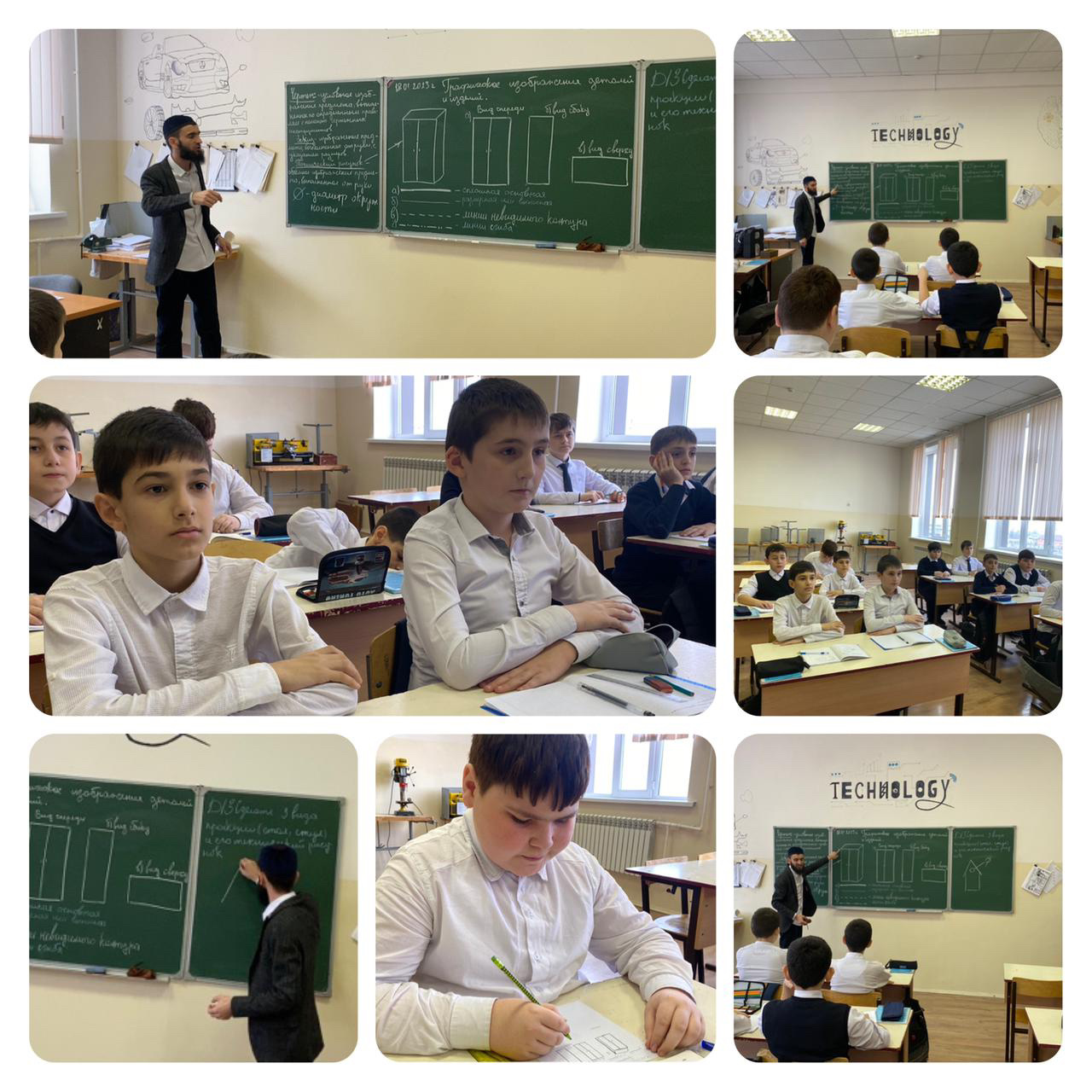 18 января в ГБОУ «Центр образования г.Гудермес»в рамках Предметной недели прошёл открытый урок по технологии в 5 классе «Графическое изображение деталей и изделий.Урок был продуктивным, интересным. Ребята научились читать чертежи, различать их от эскизов и технических рисунков,чертить детали в различных проекциях.Учитель технологии Эскирханов Р. Х. обеспечил формирование предметных и универсальных учебных действий, позволил учащимся самостоятельно открывать знания.