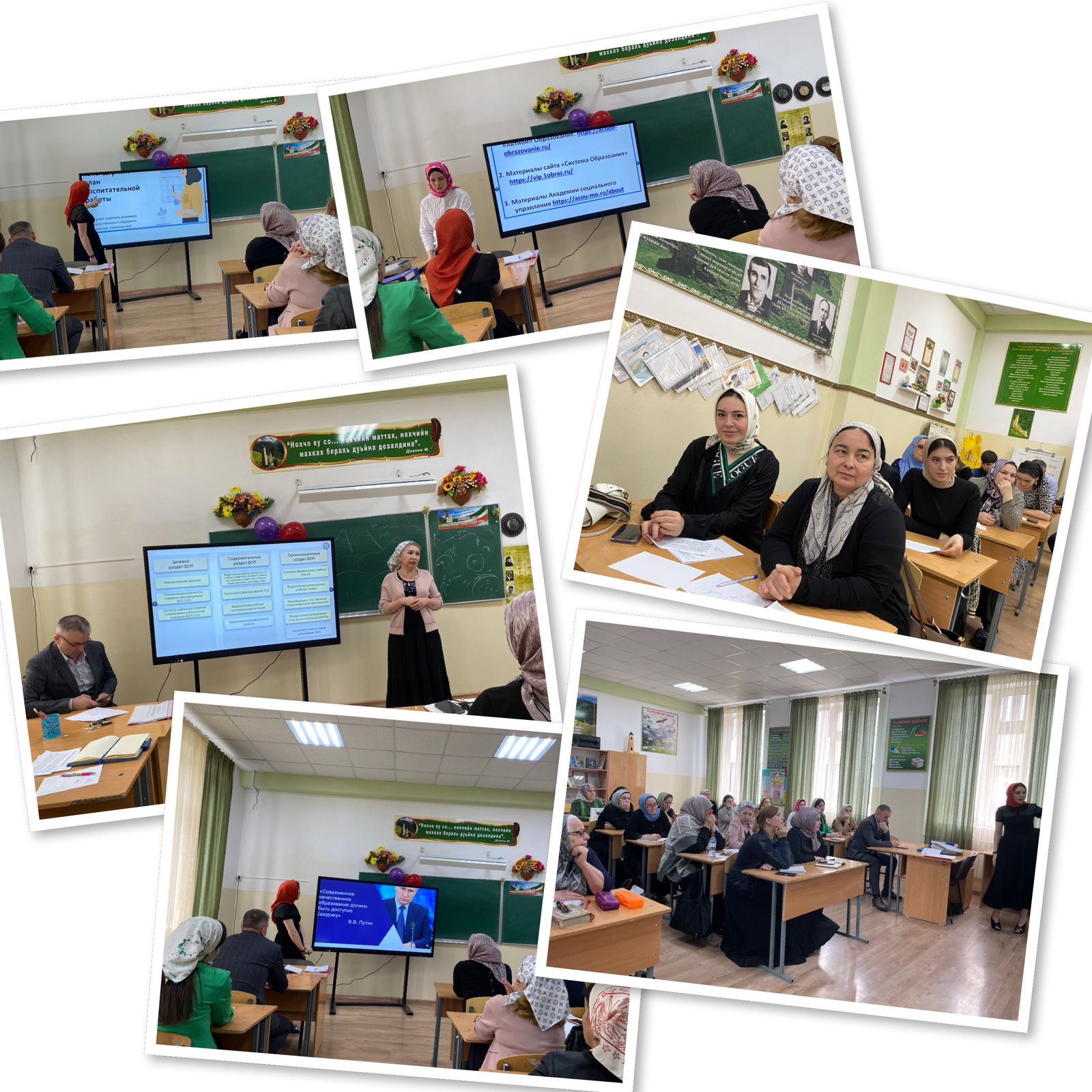 Участниками семинара стали все педагоги.С приветственным словом обратился директор школы Эскиев Б.В. Он озвучил основные задачи государственной политики в сфере общего образования, а также рассмотрел особенности формирования учебного плана с учетом ФГОС среднего общего образования.рассказала о деятельности школ по разработке основных образовательных программ, а также о том, какие существуют ресурсы и методическая поддержка для тех, кто занимается формированием функциональной грамотности обучающихся в рамках урочной и внеурочной деятельности.Методист школы Шангереева К. А.провела семинар по теме: «Подготовка к переходу на ФООП». Этот семинар был важен для учителей. На семинаре были четко определены дальнейшие задачи при переходе на федеральные государственные образовательные стандарты и единые программы обучения, а также были озвучены какие управленческие решения нужно принять в ближайшее время, чтобы подготовиться к новому учебному году, о необходимости прохождения курсов педагогами школы . Семинар завершился мастер-классом, который провела учитель начальных классов Гилисханова С.М. Она продемонстрировала методический прием «Шпаргалка». Учащимся предлагается прочитать текст параграфа. После этого им необходимо передать его содержание (можно с помощью рисунков, условных обозначений или схем).Подписанные шпаргалки ученики отдают учителю. Ими они могут воспользоваться на следующем уроке.