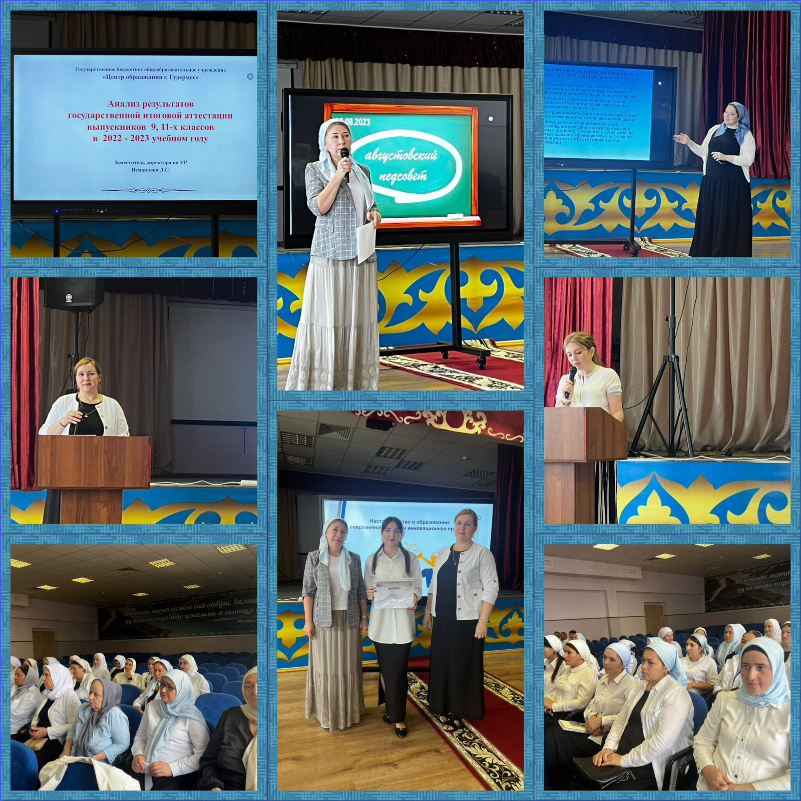 29 августа 2023 года в ГБОУ "Центр образования г. Гудермес" состоялось заседание педагогического совета по теме "Анализ результатов образовательной деятельности педагогов за 2022-2023 учебный год. Реализация мероприятий Года педагога и наставника".