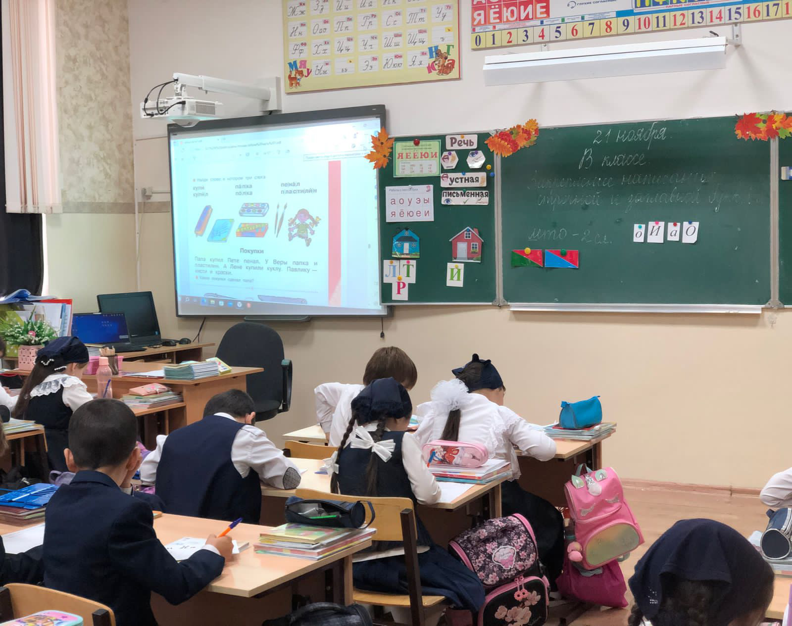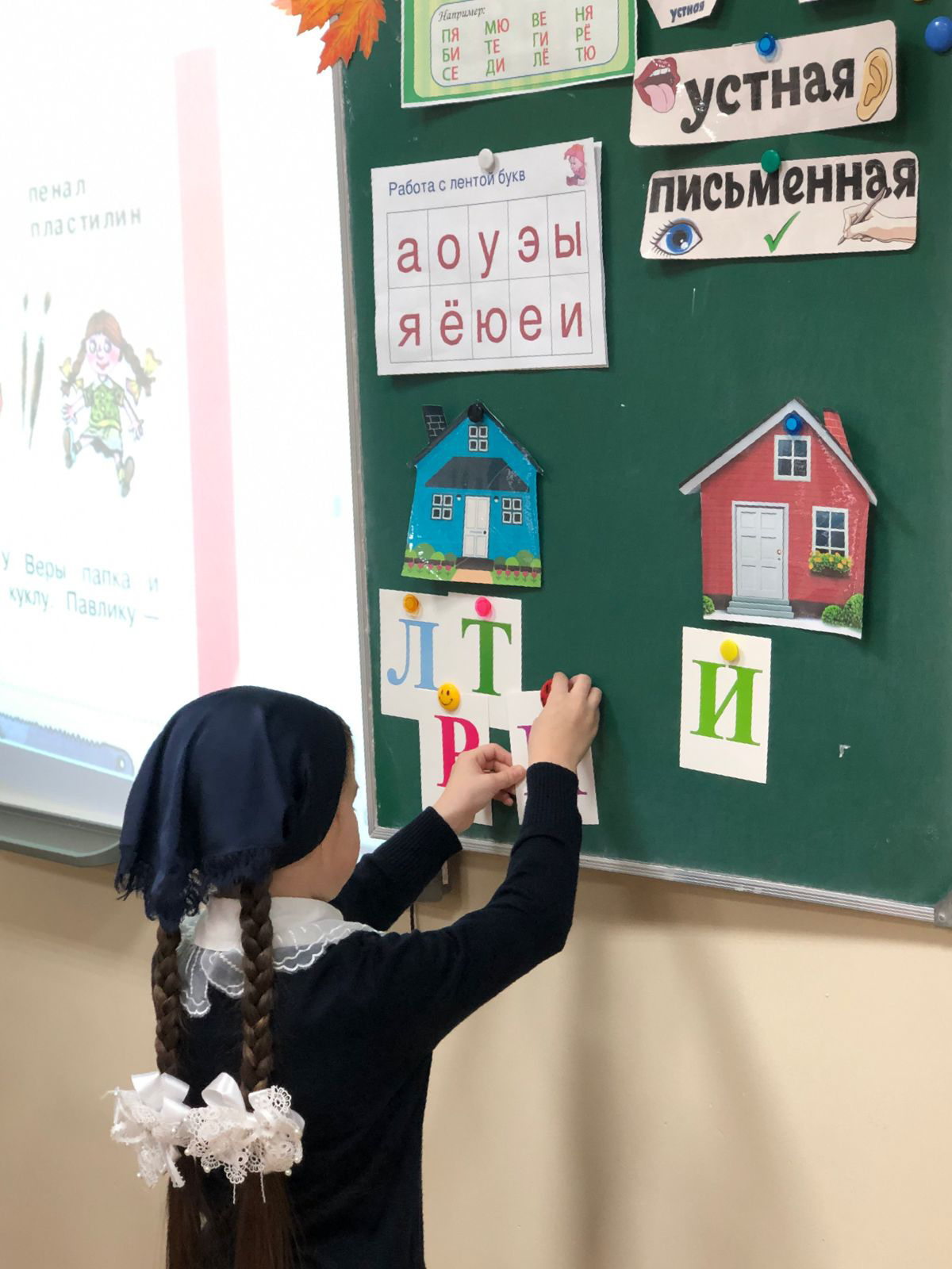 21 ноября 2023 года в 1 б классе проведён урок русского языка по теме "Закрепление написания строчной и заглавной буквы Л, л". Учитель начальных классов Халадова Л. Э. - С. для каждого ребёнка создаёт ситуацию успеха, что способствует мотивации и поддержанию познавательного интереса к обучению. Так как у первоклассника мышление преимущественно наглядно-образное, использовался материал в виде иллюстраций, схем, презентации.