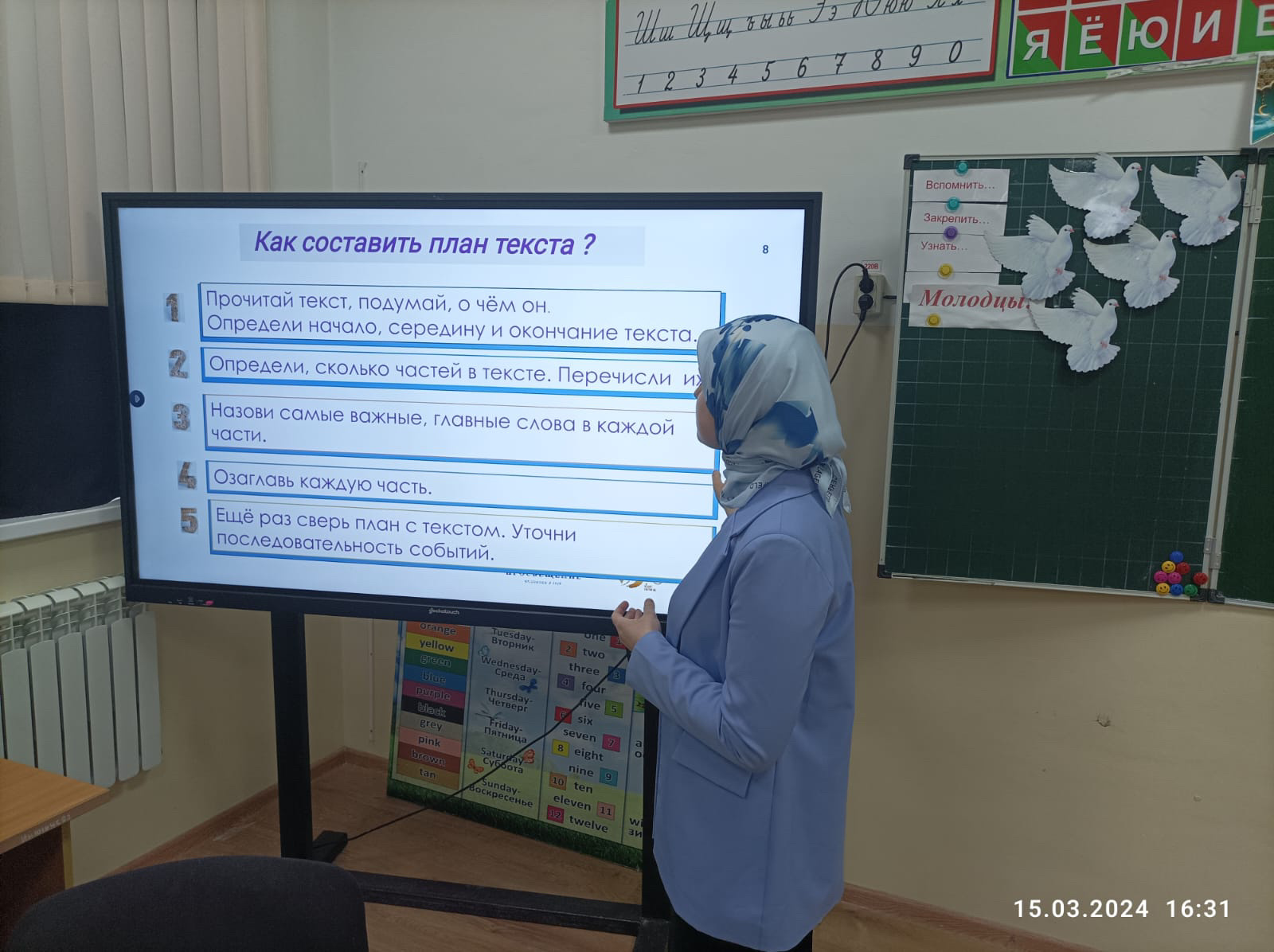В рамках реализации регионального проекта "ПРОдвижение" 15 марта 2024 года в ГБОУ "Центр образования г. Гудермес" для учителей начальной школы проведён образовательный интенсив "Формирование умений составлять план текста у обучающихся младшего школьного возраста".