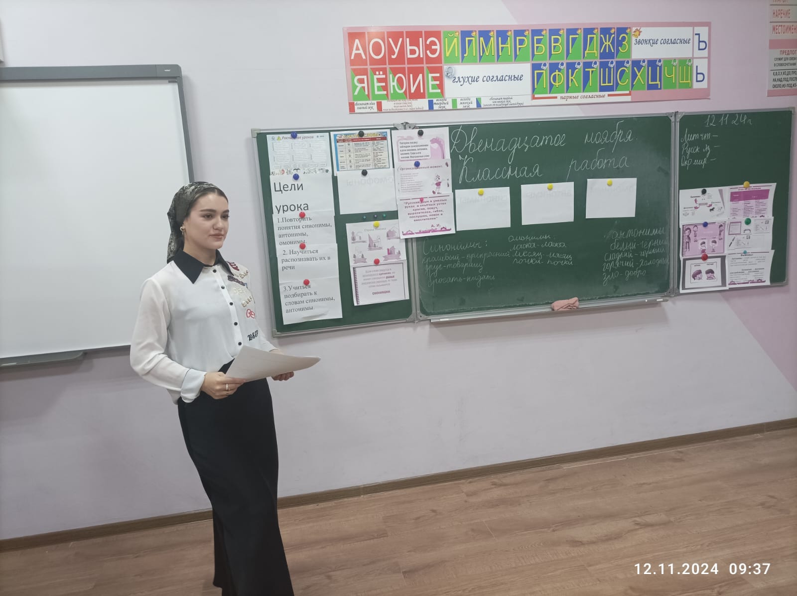 11.11.2024С целью оказания методической помощи начинающему педагогу ГБОУ "Центр образования г. Гудермес" Сулеймановой Р. М. заместителем директора по УР Евтеевой И. А. посещен урок русского языка по теме "Повторяем лексику: наблюдаем за использованием в речи синонимов, антонимов, омонимов". Учитель начальных классов Сулейманова Р. М. развивает творческие способности учащихся на основе активизации их деятельности. Особое внимание уделяет индивидуальной работе и дифференцированному обучению школьников.
