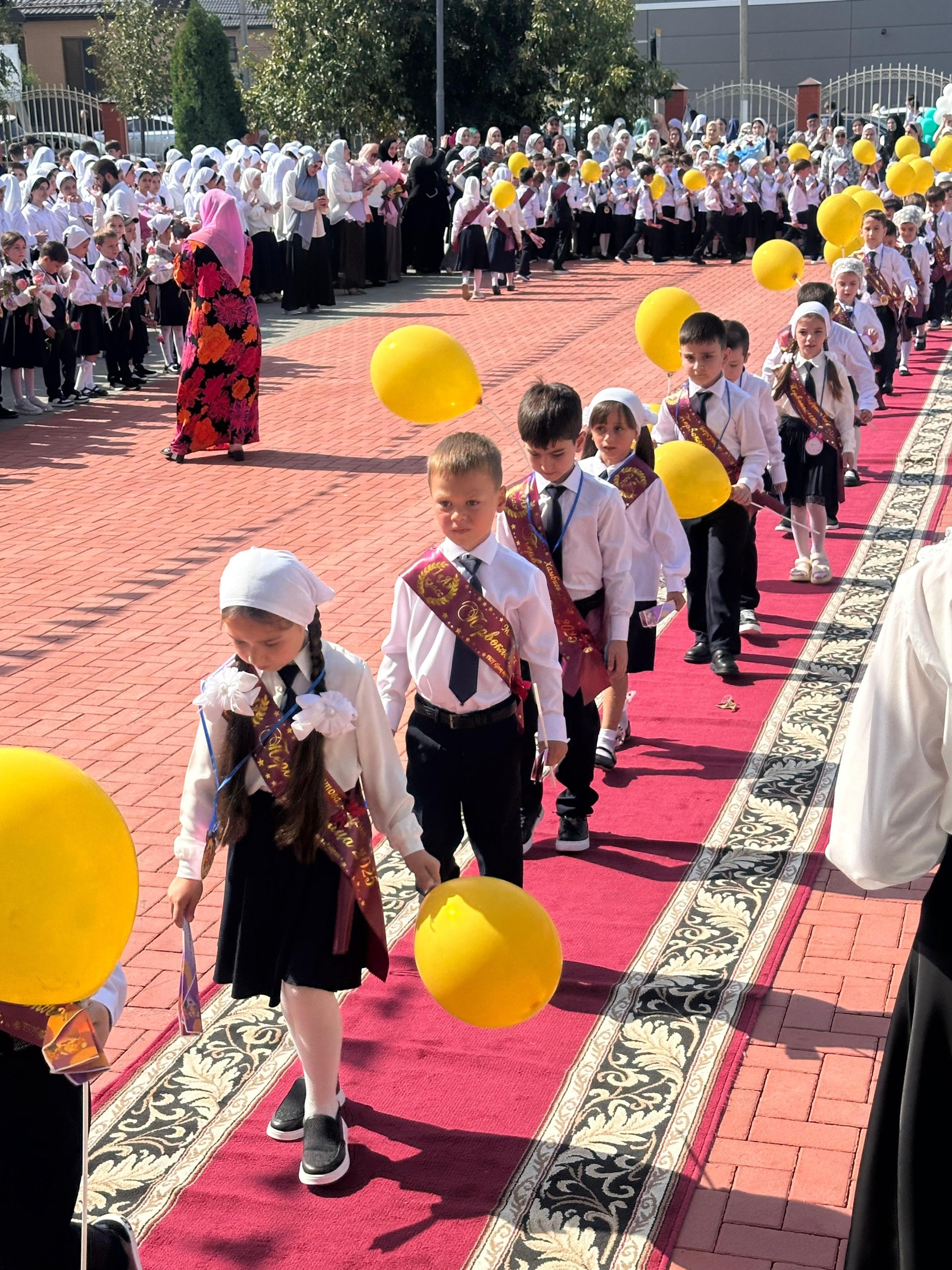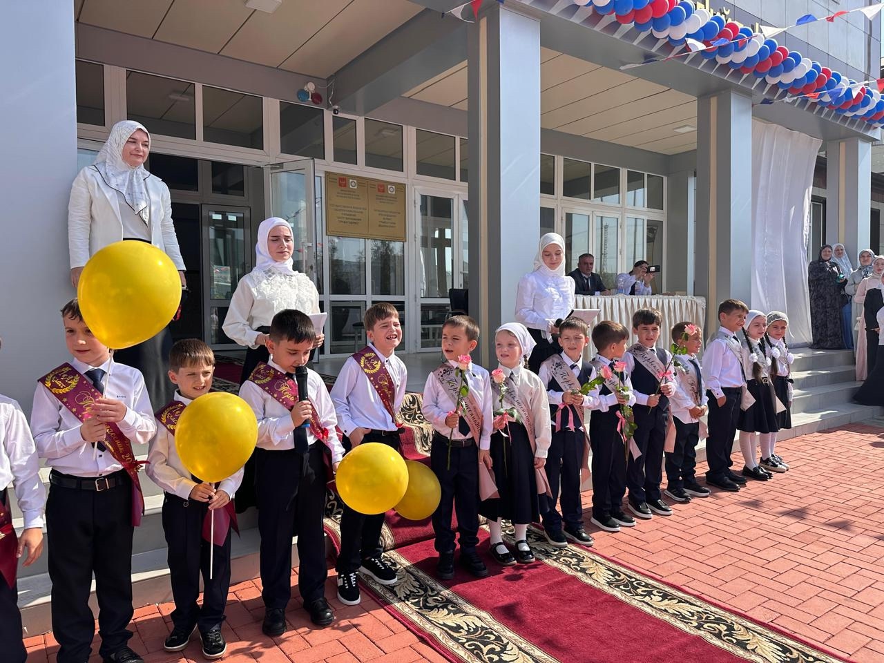 С особой торжественностью встречала школа своих первоклассников и будущих выпускников. И это не случайно! Ведь для первоклассников этот праздник - своеобразное посвящение в ученики, а для учеников 9, 11 классов - торжественное вступление во взрослую жизнь. Торжественная церемония началась с подъема Государственного флага Российской Федерации.Это был чудесный школьный праздник, посвященный началу учебного года, где со словами приветствия ко всем ребятам и их родителям обратился директор Б.В.Эскиев. Он пожелал ученикам хорошо учиться и достигать как можно больше побед на всех этапах школьного пути, а первачкам, которые впервые переступили порог школы – терпения, усидчивости и жажды к учению.Обращаясь к педагогическому коллективу, Бувайсар Вахаевич пожелал новых достижений в педагогическом труде, и чтобы все ученики радовали своими успехами.Добрые и искренние слова в адрес первоклассников были сказаны выпускниками школы, которые по традиции не только поздравили первоклассников, но и вручили «Самолетики будущего» с пожеланиями.«В дорогу к знаниям! Смелей, вперед!Пусть каждый класс шагает.Мы дарим символ вам, бумажный самолётик,Пусть все мечты он ваши исполняет».И вот он, самый трогательный, самый торжественный миг: для всех учащихся школы громко, заливисто прозвенел первый звонок, известивший о начале нового учебного года.Так был сделан первый шаг в новую жизнь, школьную жизнь. Мы уверены, что наш первый школьный день запомнится всем. Ведь это не только начало учебного года, но и путешествие в удивительный мир знаний, мудрых книг, добрых людей и благородных поступков.
