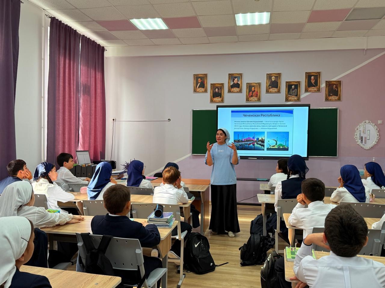 08.09.2025Утро понедельника в школе традиционно началось с торжественной линейки, церемонии поднятия флага и исполнения гимна Российской Федерации и Чеченской Республики.