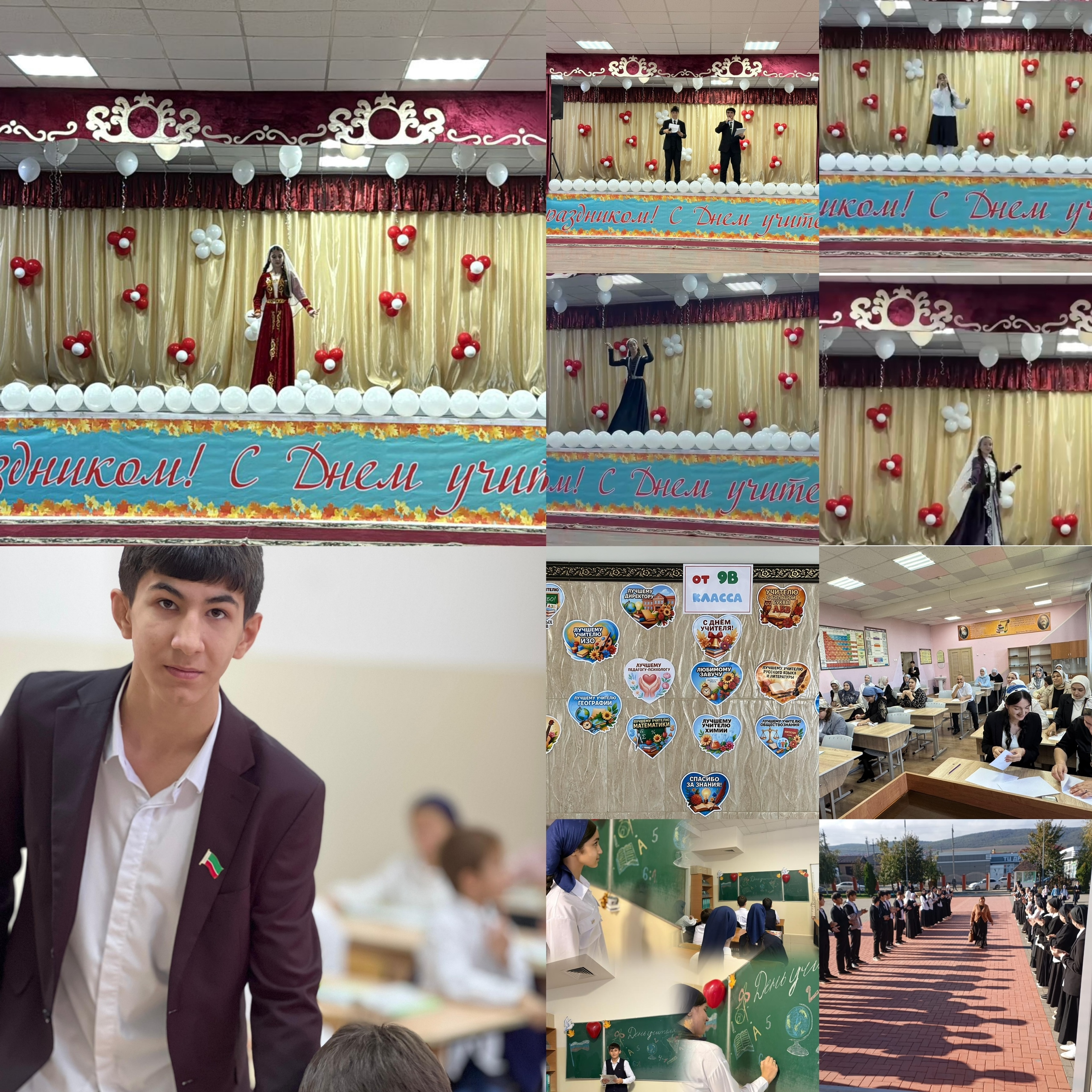 И ГБОУ « Центр образования г.Гудермес» не стала исключением…День учителя — общий праздник, праздник всех поколений, благодарных за полученные знания и умения, за воспитание. Воспоминания о школе, об образе уважаемого учителя сопровождают каждого из нас на протяжении всей жизни, побуждают только к добрым поступкам, служат опорой в трудную минуту.С самого утра вокруг школы царила праздничная атмосфера, звучали песни и на входе любимых педагогов встречали ребята 9 класса с цветами и поздравлениями.В этот праздничный день в нашей школе был проведён День Самоуправления, в завершении которого был организован праздничный концерт, посвященный Дню Учителя. В нём приняли участие учащиеся 1 – 9 классов.Словами благодарности, уважения, признательности и почетными грамотами был отмечен труд учителей.Таким образом, День Учителя стал важным событием в школьной жизни, объединяя преподавателей и учащихся в атмосфере благодарности и взаимного уважения.