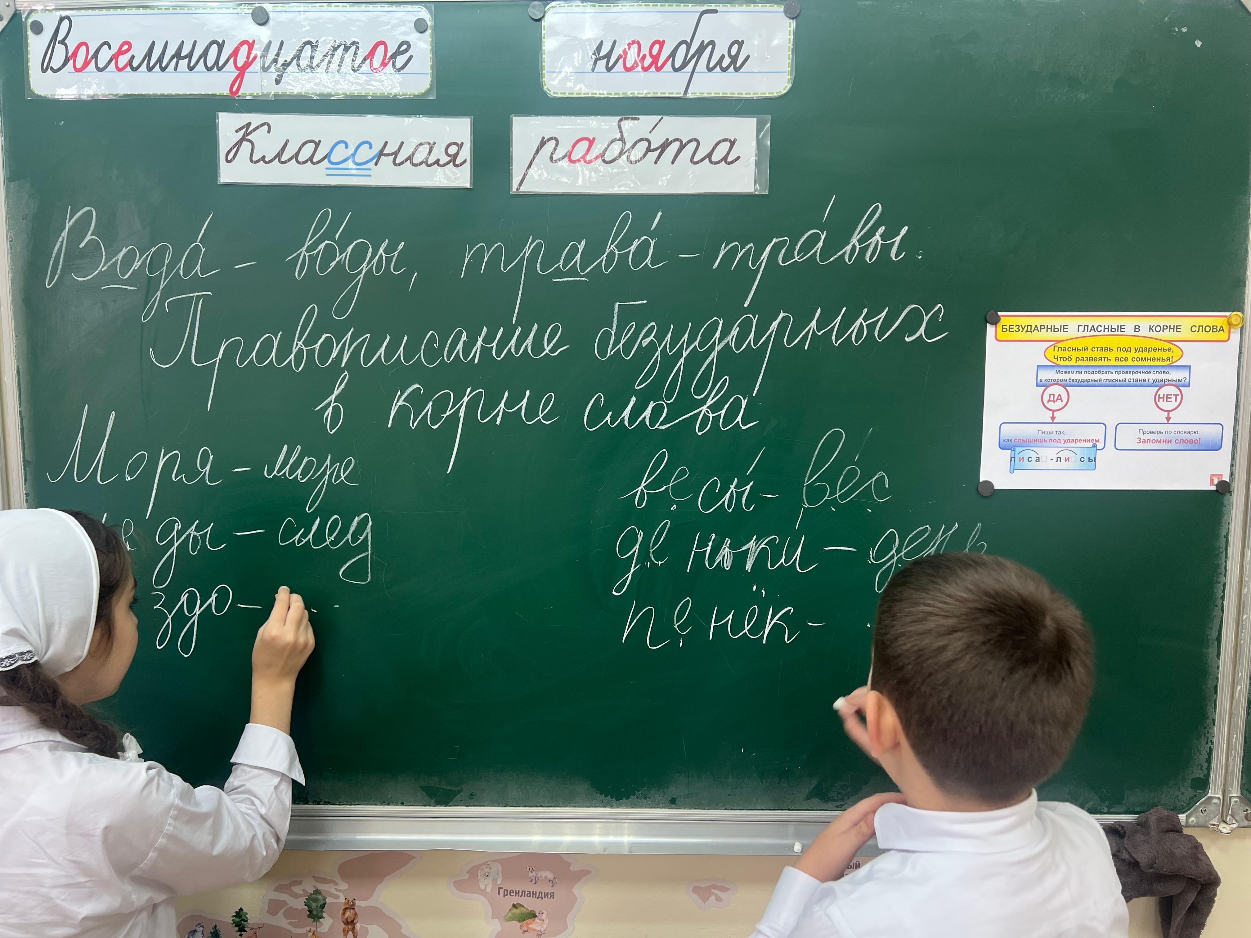 18.11.202518 ноября в ГБОУ "Центр образования г. Гудермес" проведён открытый урок русского языка. Поделилась своим опытом работы учитель начальных классов Эдилгериева Маржан Идрисовна. В ходе урока учащиеся обобщили знания по теме "Повторяем правописание проверяемых безударных гласных в корне слова". Содержание урока и организация активной мыслительной деятельности учащихся на всех этапах урока способствовали достижению планируемых результатов. Маржан Идрисовна создала благоприятную психологическую атмосферу, которая поддерживала активность и работоспособность учеников.