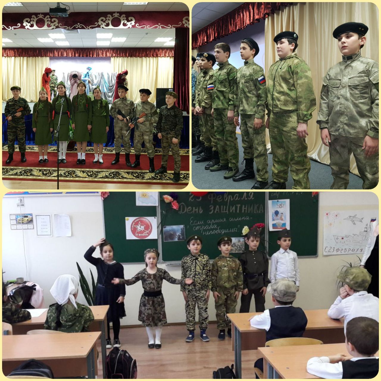 26.02.2018В целях патриотического воспитания, развития в детях чувства долга перед Отечеством, любви к Родине, в нашей школе проходили мероприятия, приуроченных к празднованию 23 февраля. Тематические классные часы: «Мои -родные защитники Родины» (1-4 кл.), «Уголок России – отчий дом» (5-10 кл.).Конкурс рисунков и плакатов среди учащихся 5-8 классов на теме: «Служу Отечеству!».Конкурс военно-патриотической песни «От солдата до генерала» среди 5-10 классов. И конечно традиционные спортивные соревнования среди 5-10 классов.В рамках таких мероприятий дети знакомятся с историей праздника, особенностями его проведения в различные исторические эпохи, отдельными историями конкретных людей — военных.
