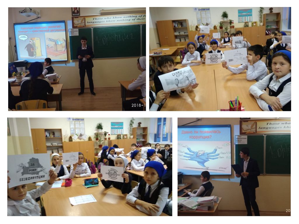 Классные руководители 7-11 классов провели тематические классные часы, посвященные проблемам коррупции в государстве: «Скажем коррупции «НЕТ!», «Коррупция в мире и в России», «Коррупция – особый вид правонарушения», «Стоп, коррупция!», «Коррупция как противоправное действие».
