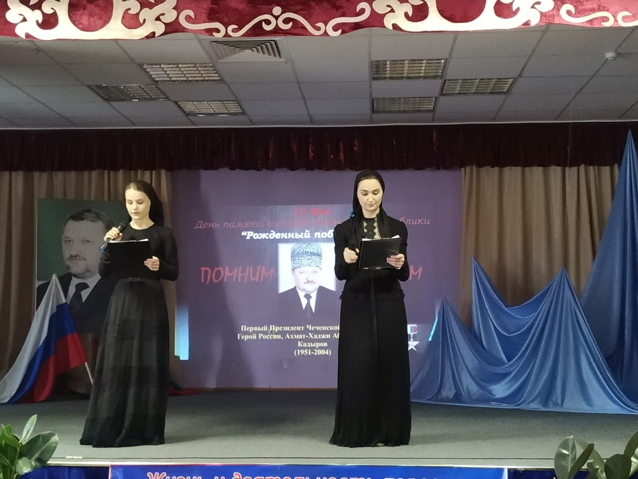 Учащиеся, занявшие призовые места, награждены почетными грамотами. Выставку книг об А-Х. Кадырове с интересом посетили учащиеся 1 – 11 классов.В школе проведена торжественная линейка, где педагог- организатор рассказала об истории тех трагических времен. Проведены: утренники, уроки, беседы, посвященные Дню Памяти и скорби народов Чеченской Республики.10 мая проведена литературно- музыкальная композиция на тему «Ушел непобежденным».06.05. -10.05. прошел конкурс сочинений «Героями не рождаются- ими становятся!» среди 8-9 кл.