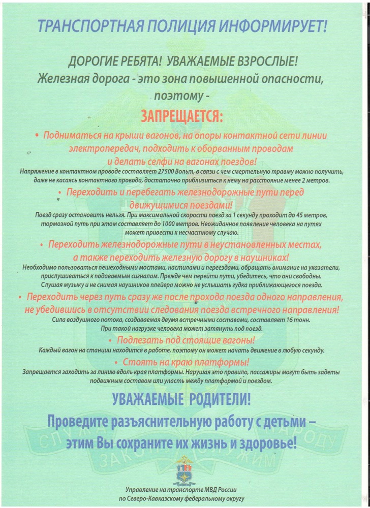 Транспортная полиция информирует